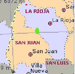 1958 : el paleontólogo de EEUU Alfred Romerse llega al oeste argentino para realizar investigaciones referidas al Triásico , avanzando luego hasta la región marcada con círculo verde , región limítrofe entre las provincias argentinas de |