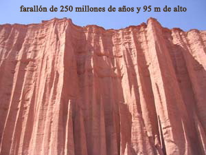 Es éste el único lugar en el mundo donde puede verse totalmente al descubierto y perfectamente diferenciado la secuencia completa de sedimentos continentales con abundantes fósiles ( de hace 200 M.A. ) de todo el Período Triásico |